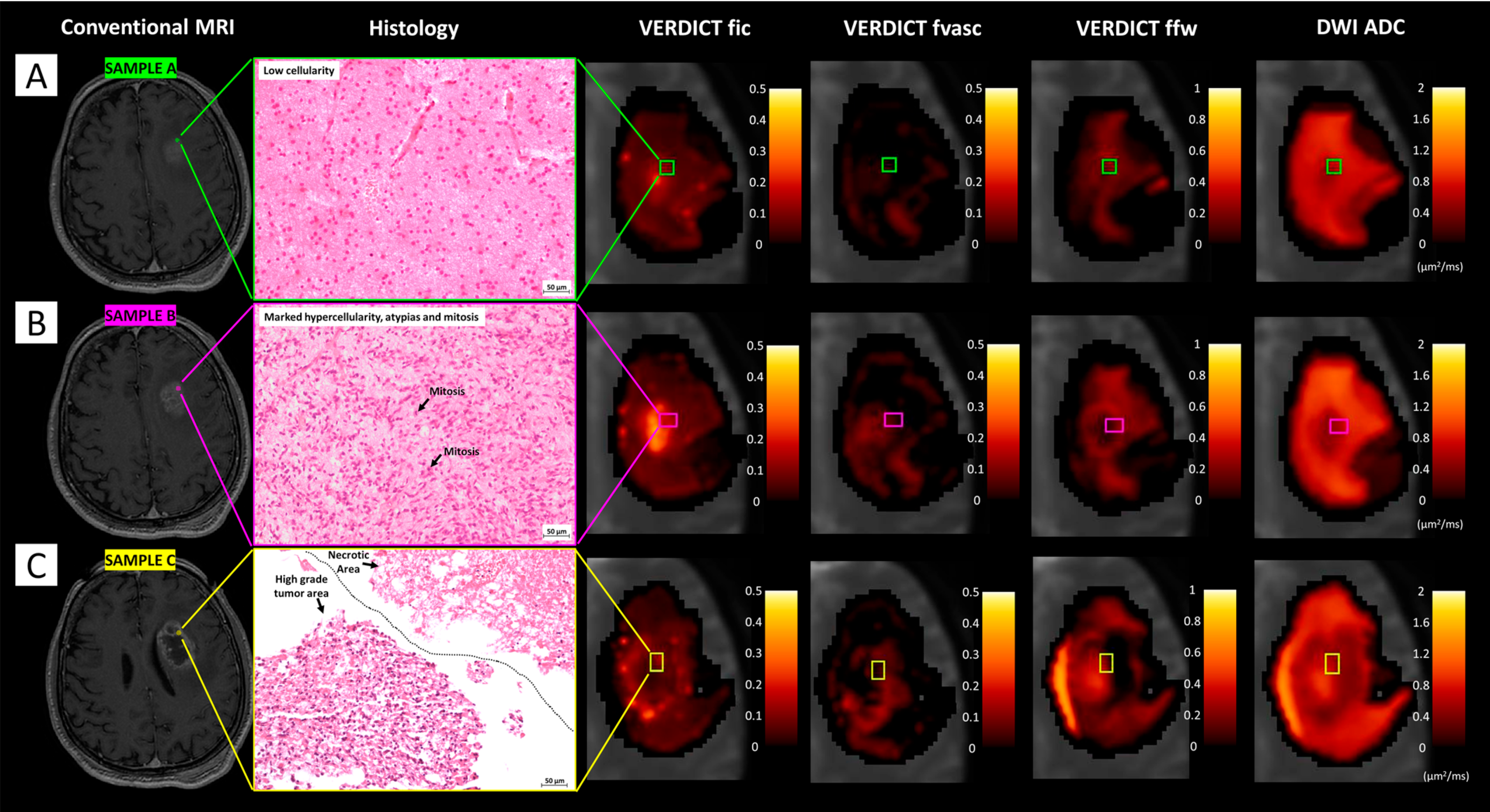 [17] Matteo Figini, Antonella Castellano, Michele Bailo, Marcella Callea, Marcello Cadioli, Samira Bouyagoub, Marco Palombo, Valentina Pieri, Pietro Mortini, Andrea Falini, Daniel C. Alexander, Mara Cercignani, and Eleftheria Panagiotaki. Comprehensive Brain Tumour Characterisation with VERDICT-MRI: Evaluation of Cellular and Vascular Measures Validated by Histology. Cancers, 2023.